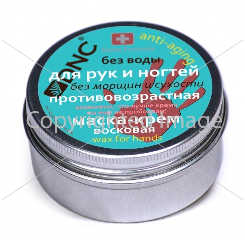 DNC Mask-cream Wax for hands and nails Anti-aging 80ml An excellent night mask for restoring and rejuvenating the skin of hands and nails. Can also be used as an intensive day cream. The frequency of application is not limited. Created only from effective ingredients without preservatives and additives. Apply the mask to your hands and nails, put on plastic gloves, or just a plastic bag. Rinse with warm water or remove with a dry cloth after 15-20 minutes. With cosmetic gloves, the mask can be left overnight, it is very effective. Classic tin can. 80 ml.